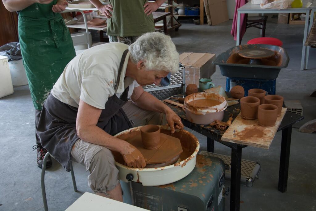 In de gezellige ateliers van Atelier Aimée en ClayMates geef ik regelmatig initiatieworkshops op het wiel/opbouw, duoreeksen, korte cursussen, teambuildings of privéworkshops.